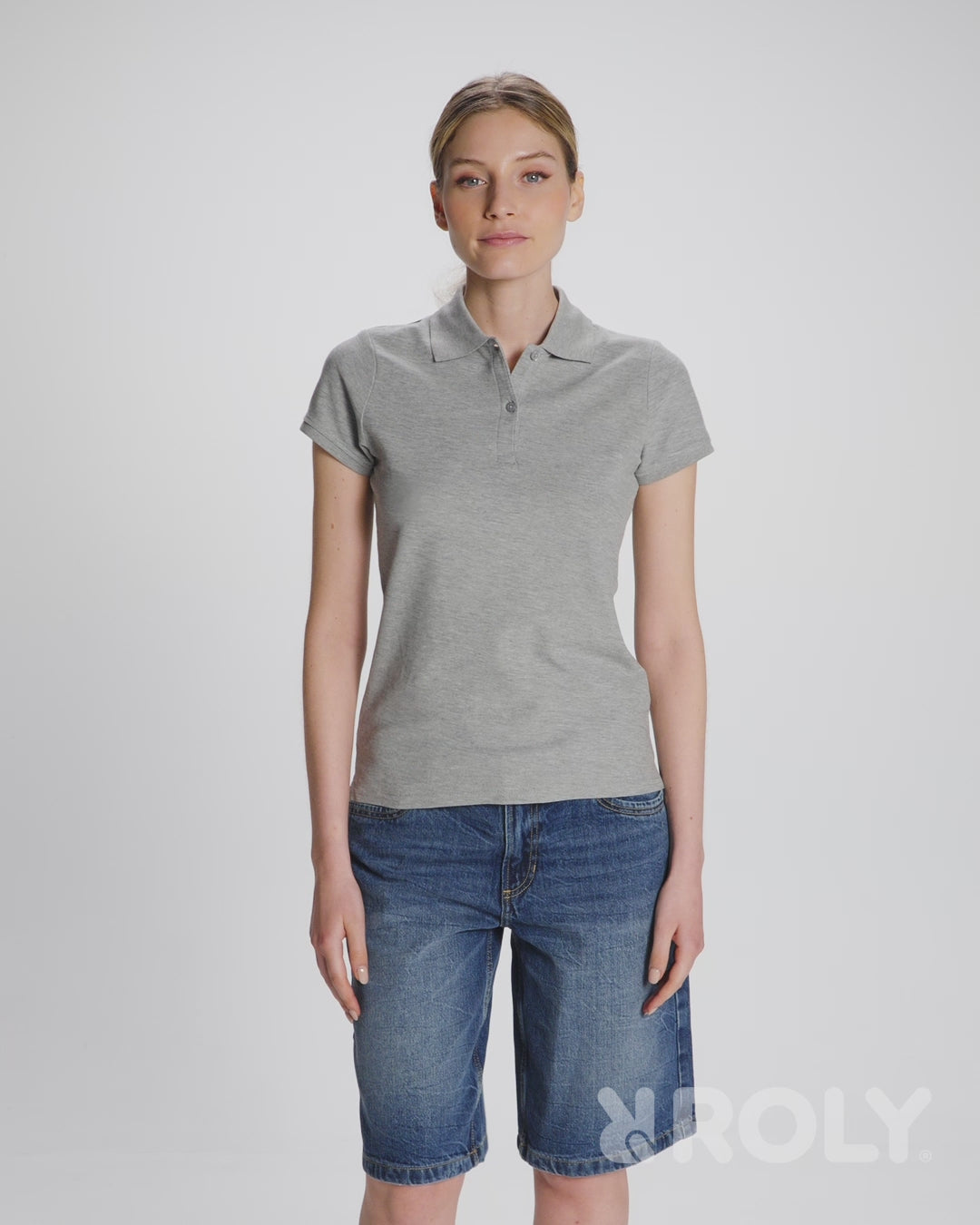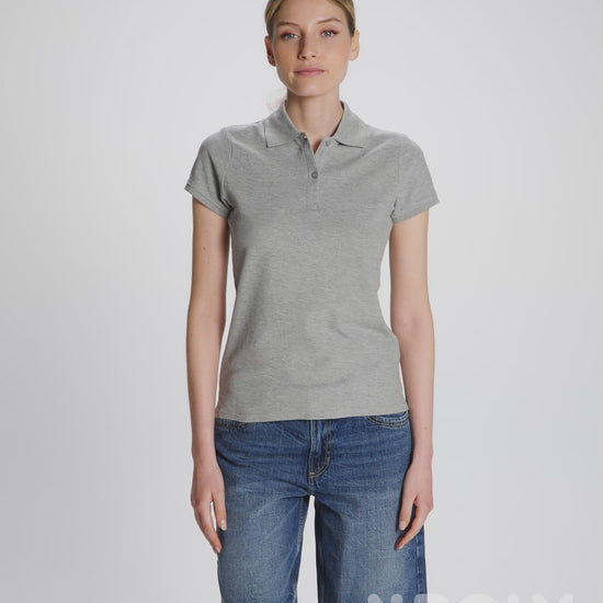 Fitted short-sleeve polo shirt for women in OCS certified organic cotton. 1x1 ribbed collar and sleeve edging. 2-button placket. Reinforced covered seams in collar. Side slits on hem.