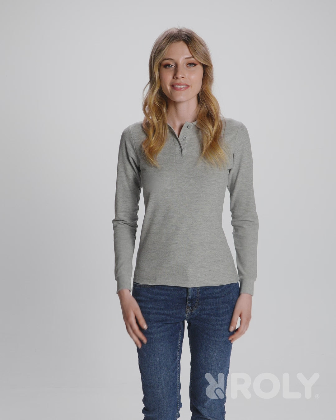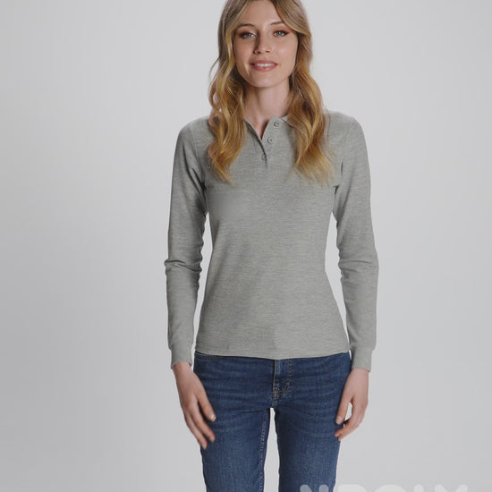 Long-sleeve polo shirt with ribbed collar and cuffs, 3-button placket and elastane 1x1 ribbed cuffs. Reinforced covered seams in collar.