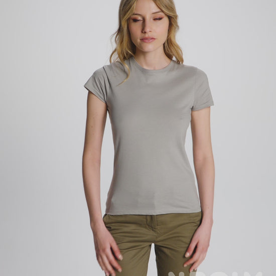 Fitted short-sleeve t-shirt. 1x1 double layer rib crew neck and covered seams from shoulder to shoulder. Side seams. T-shirt available in 21 colours.