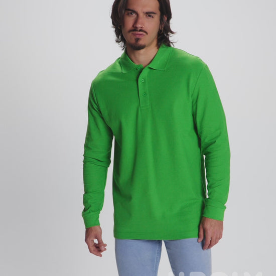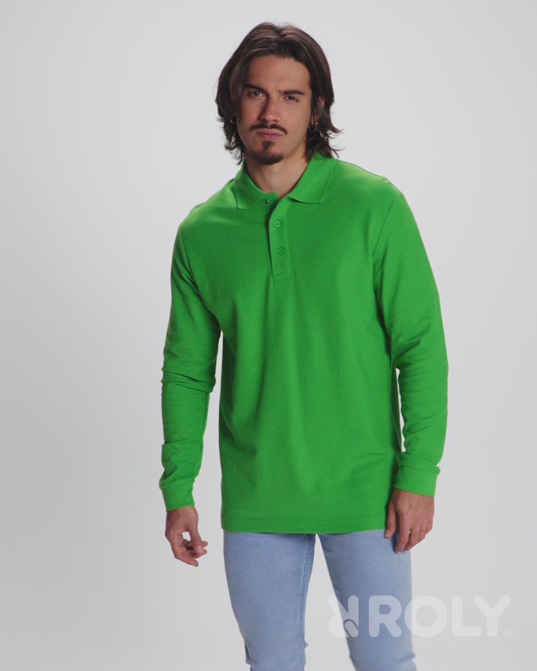 Long-sleeve polo shirt with ribbed collar and cuffs, 3-button placket and elastane 1x1 ribbed cuffs. Reinforced covered seams in collar.