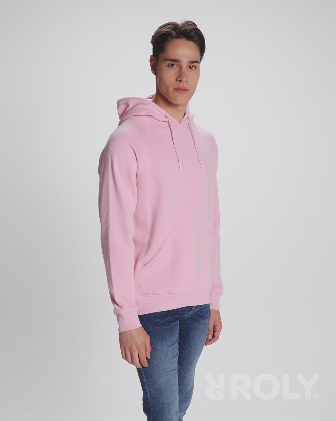 Unisex hoodie in organic cotton and recycled polyester. Kangaroo style pocket. Single jersey lining in hood. Round adjustable drawcord and embroidered eyelets. Cuffs and waistband in 2x1 ribbed fabric.